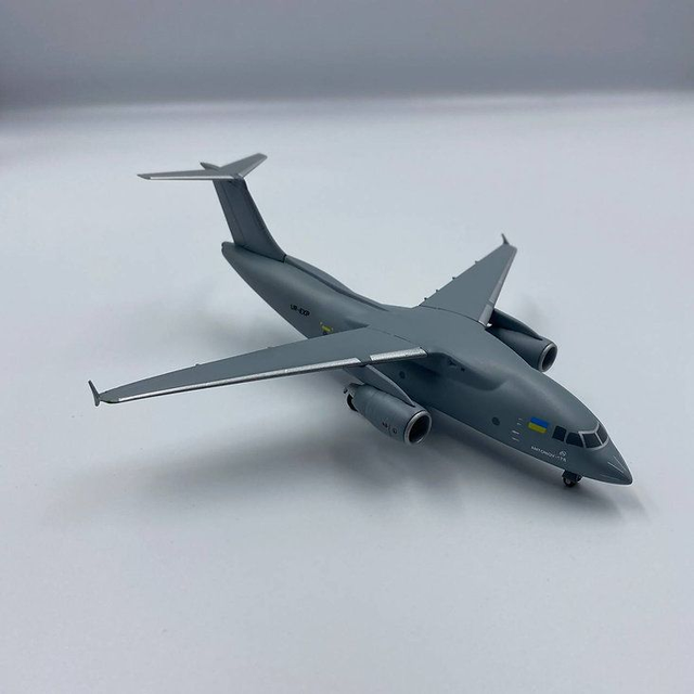 Antonov An-178 UR-EXP Prototyp von Antonov. Detailliertes Sammlermodell aus Kunststoff im Massstab 1:200 mit Fahrwerk und Ständer. Hergestellt von KUM in der Ukraine