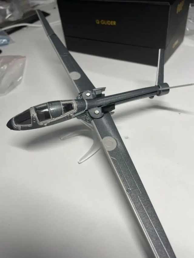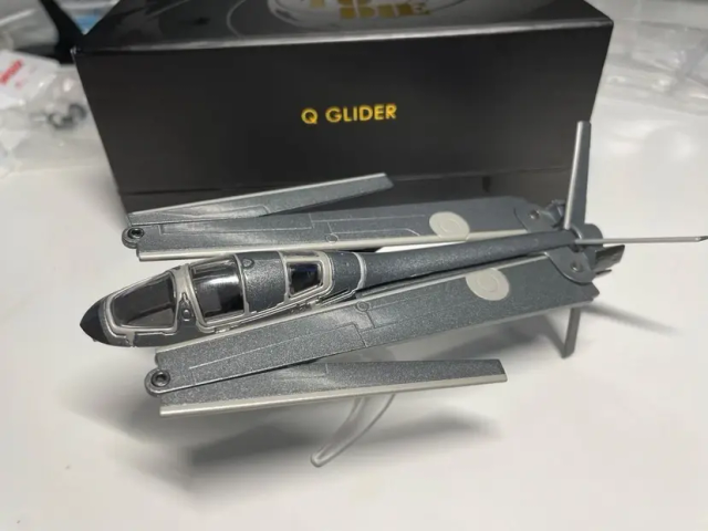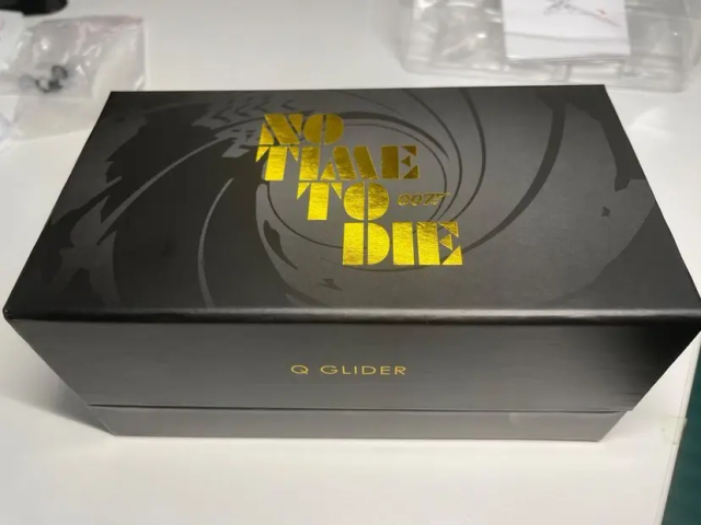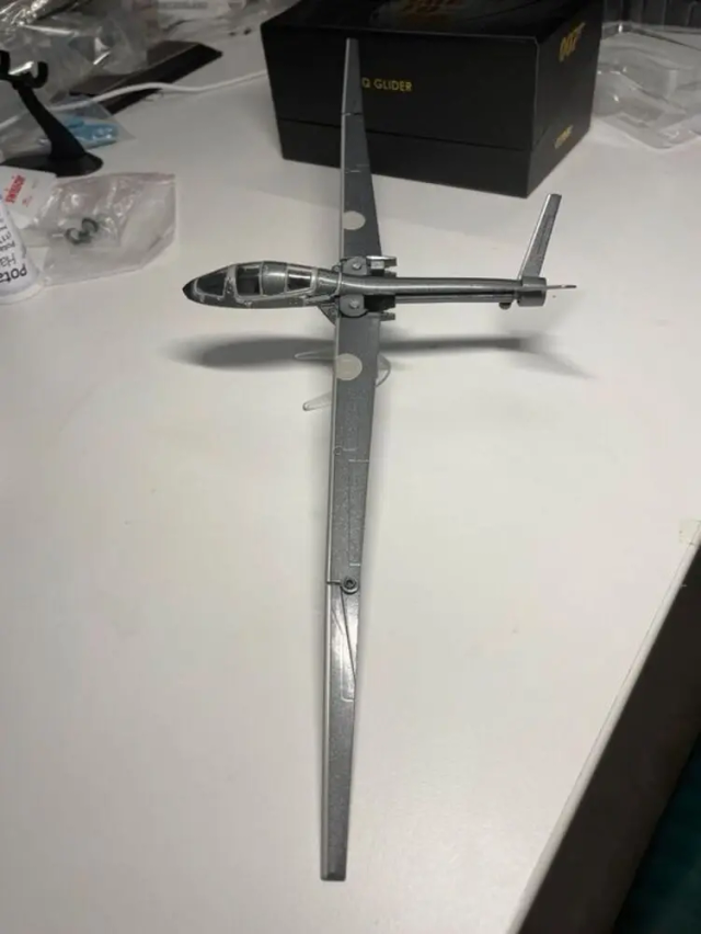 Hintergrund: Im Film "No Time to die" werden Bond und Nomi an Bord des Q Glider aus einem Transportflugzeug abgeworfen. Die Flügel entfalten sich und die Maschine wird zum Segelflugzeug. Knapp über der Meeresoberfläche werden die Flügel wieder eingeklappt und der Glider wird zum Unterseeboot mit Schraubenantrieb am Heck. So gelang es den beiden in den Poisoned Garden einzudringen.
